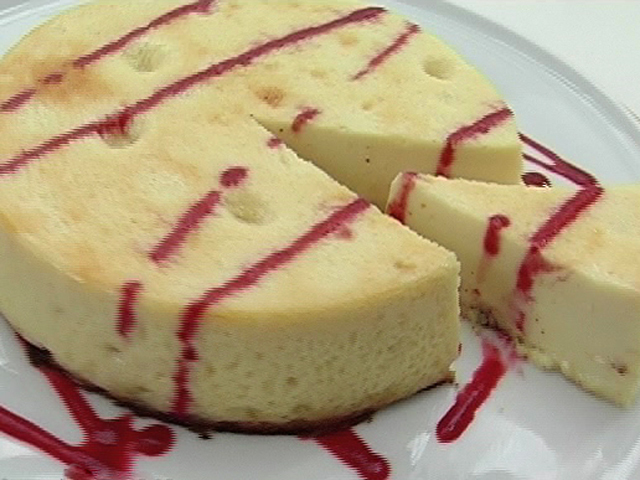 Традиционный американский десерт из сыра.Состав:масло — 50 гр;малиновый джем — 50 гр;сгущенка — 450 гр;творог — 500 гр;яйца — 5 штук.