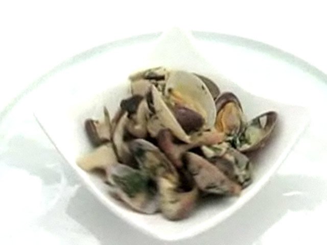 Низкокалорийный рецепт из морепродуктов. 248 калорий.Состав:моллюски — 200 гр;вода — 1/2 стакана;чеснок — 1 зубчик;оливковое масло — 1 столовая ложка;шиитаке — 100 гр;грибы — 100 гр;петрушка.